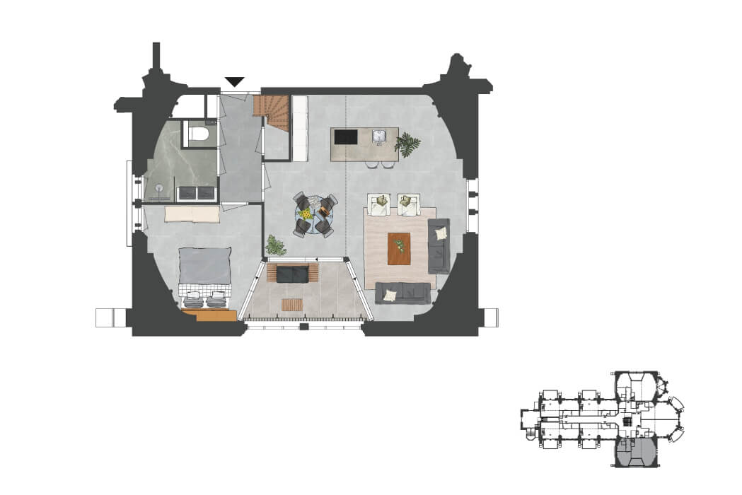 - Slaapkamer onder de monumentale gewelven