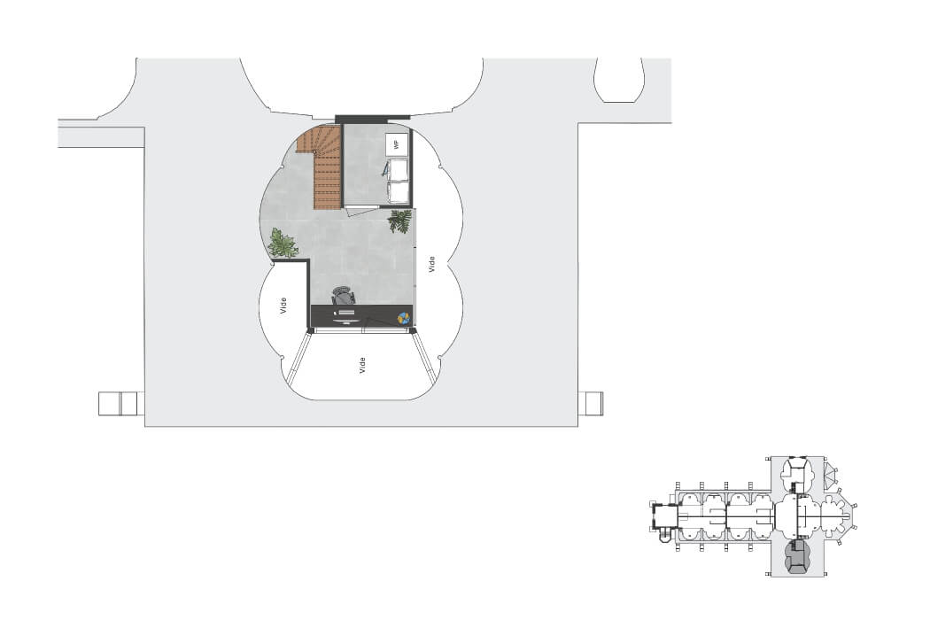 - Insteek met ruime werkplek aan de vide