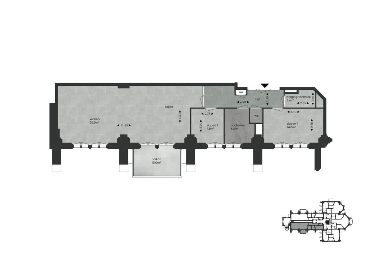 - Ruime woonkamer van ruim 55 m2